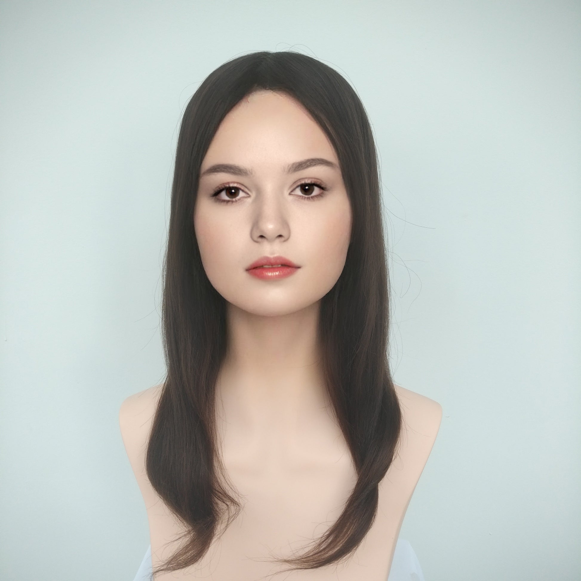 European hairpiece long 18" dark-brown