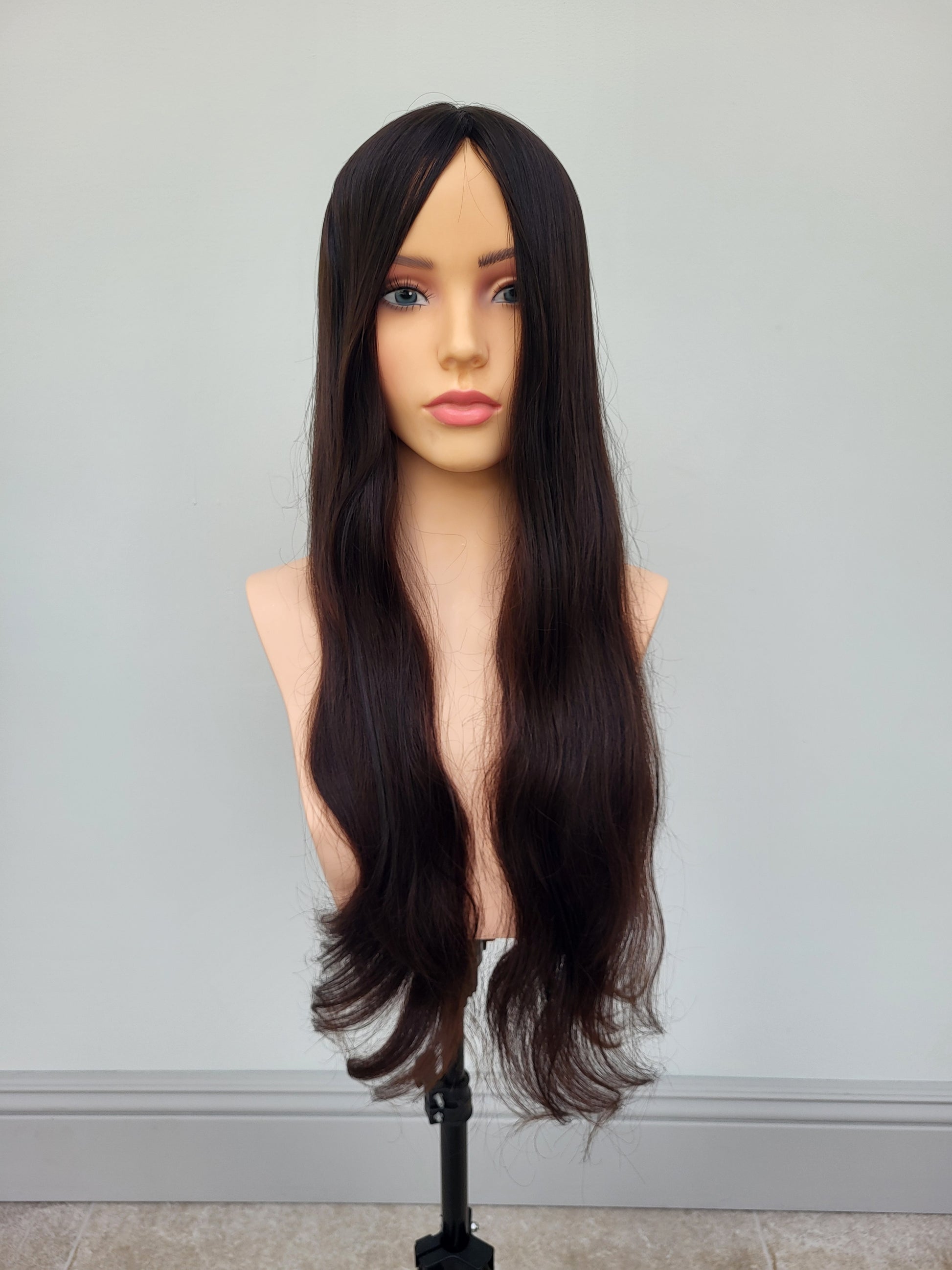 European hairpiece long 24" dark-brown